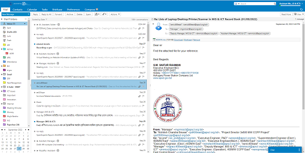 কাগজবিহীন অফিস তৈরির উদ্দেশ্যে একটি গুরুত্বপূর্ণ ধাপ এই মেইলিং সিস্টেম। আন্তঃবিভাগীয় বিভিন্ন যোগাযোগ এই সিস্টেমের মাধ্যমে করা হয়ে থাকে। বিভিন্ন অফিস আদেশ এই সিস্টেমের মাধ্যমে প্রতিনিয়ত বিতরণ করা হয়। বিশেষ করে মানব সম্পদ, ক্রয় পরিচালন বিভাগ প্রতিদিন অসংখ্য ডকুমেন্ট তৈরি করে। এই সিস্টেম বাস্তবায়নের পূর্বে প্রতিদিন অনেক কাগজ প্রিন্ট করার প্রয়োজন হত যা সময় এবং খরচ উভয় বাড়াত। এখন এই সিস্টেমের মাধ্যমে তা ডিজিটালি করা সম্ভব হয়েছে যা কাগজ, কালি এবং গুরুত্বপূর্ণ সময় বাঁচাচ্ছে।