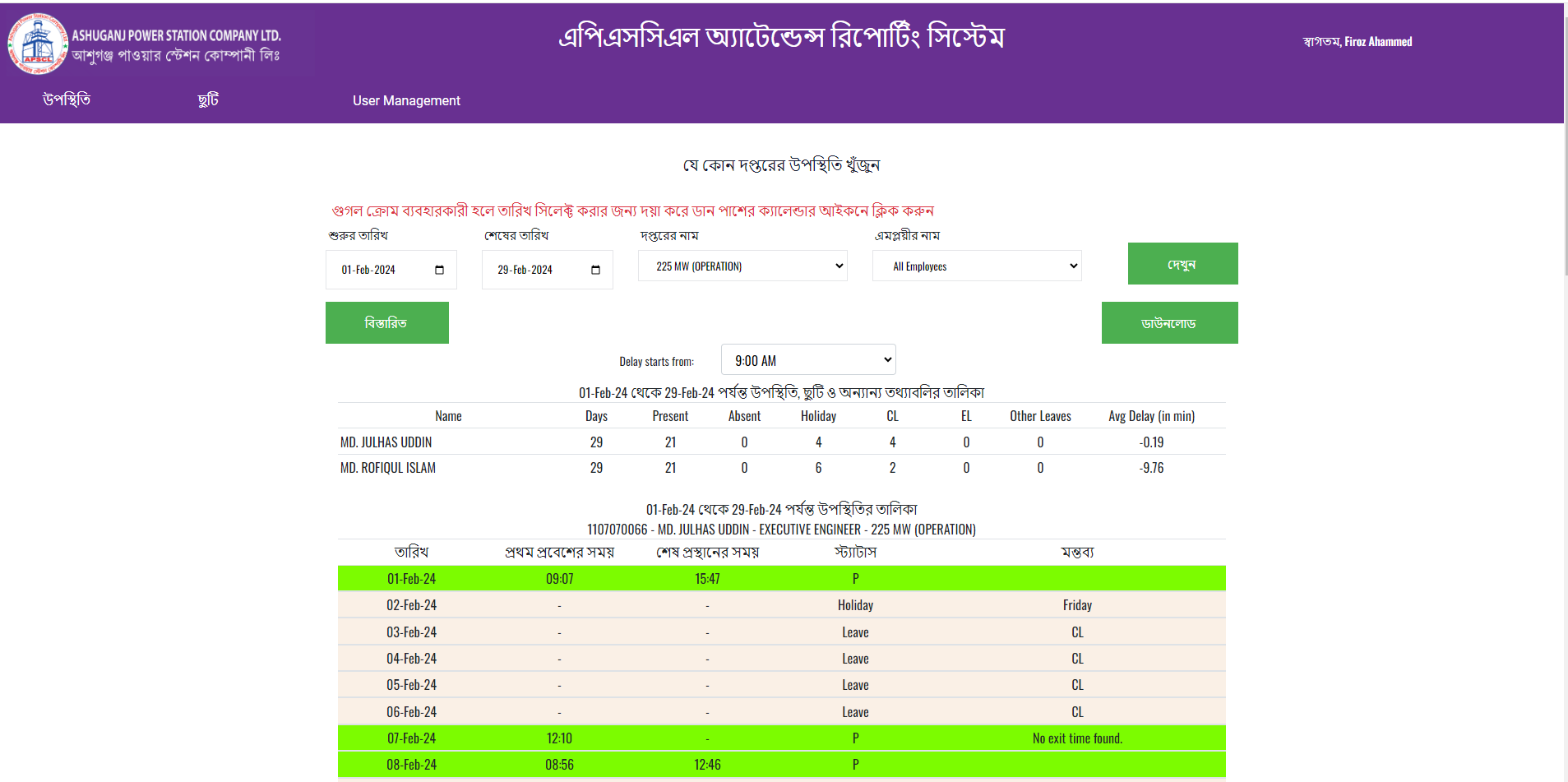 এপিএসসিল তার কর্মকর্তা কর্মচারীদের উপস্থিতি ফেস ডিটেকশন সিস্টেম অথবা ফিঙ্গার প্রিন্টের সাহায্যে নিশ্চিত করে। কর্মকর্তা-কর্মচারীরা এপিএসসিএল পরিচালিত বিভিন্ন স্থানে যেমন মূল বিদ্যুৎ কেন্দ্রের বিভিন্ন এলাকা, ট্রেনিং সেন্টার, মেডিকেল সেন্টার এবং স্কুল-এ কাজে নিয়োজিত থাকে। এই সিস্টেম কর্মকর্তা-কর্মচারীদের প্রবেশ/প্রস্থান সংক্রান্ত ডেটা সমস্ত ফেস ডিটেকশন ও ফিঙ্গার প্রিন্ট মেশিন থেকে নিয়মিত গ্রহণ করে এবং একটি মূল সার্ভারে জমা রাখে। এমআইএস এন্ড আইসিটি বিভাগের নিজস্ব জনবল দ্বারা প্রস্তুতকৃত একটি সফটওয়্যারের মাধ্যমে সকল সুপারভাইজার তার অধীনস্ত কর্মকর্তা কর্মচারীদের বিদ্যুৎ কেন্দ্র প্রবেশ ও প্রস্থান মনিটর করতে পারেন। এই সফটওয়্যার থেকে মানব সম্পদ ও হিসাব বিভাগ উপস্থিতি ও দেরীতে উপস্থিত রিপোর্ট বের করতে পারে। এছাড়াও দরজায় সংযুক্ত ফিঙ্গার প্রিন্ট মেশিন দিয়ে নিয়ন্ত্রিত ম্যাগনেটিক তালার সাহায্যে এই সিস্টেম অনুমোদিত প্রবেশ নিশ্চিত করে।